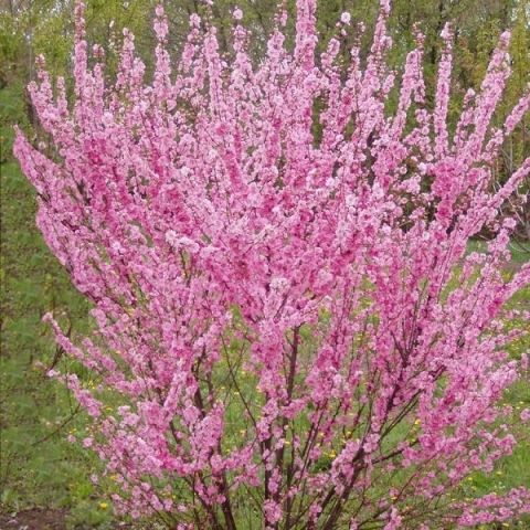 - Декоративность: Миндаль радует глаз красивыми розовыми или белыми цветами весной.